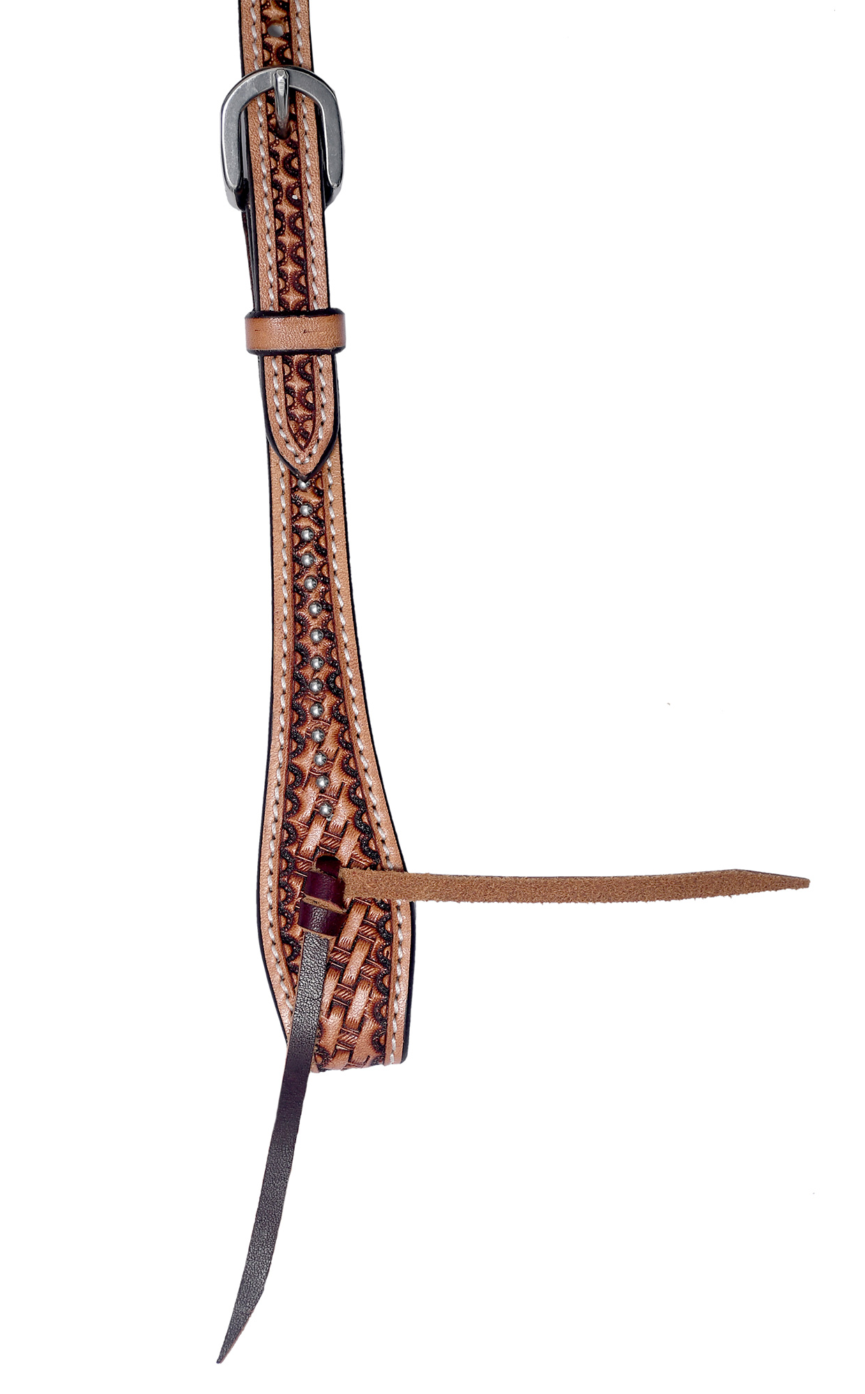 Basket Tooled with Silver Spots |American Leather |Straight Browband Headstall |Natural