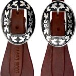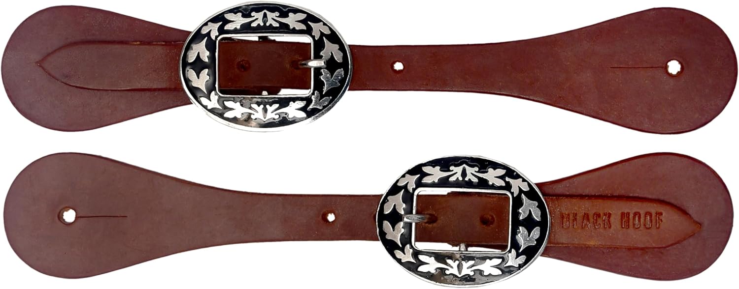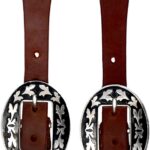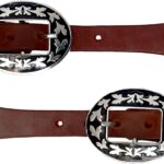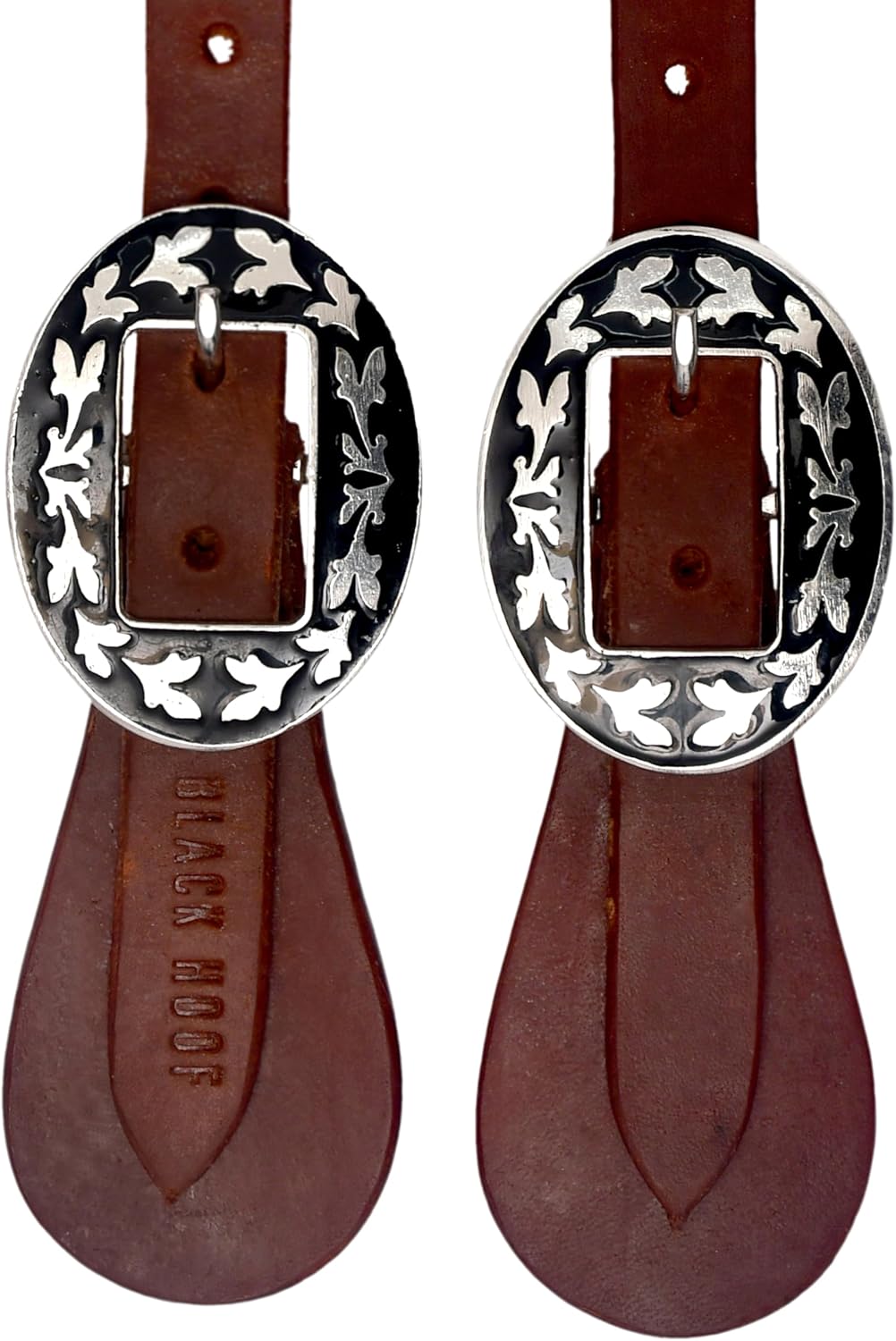 Turquoise arrow buckle spur straps made with high quality Skirting leather, light weight, stylish, not easy to break , 5 holes on the belt helps you adjust the buckle according to your comfort while riding. The turquoise and black enameled buckle adds unique look to it.