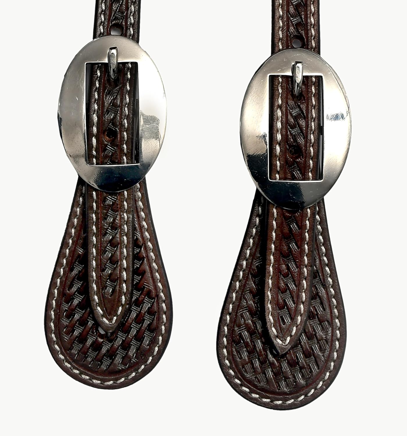 - Basket Tooled W/ Rawhide weave Spur Strap with 5 holes on belt gives better tighter grip while riding