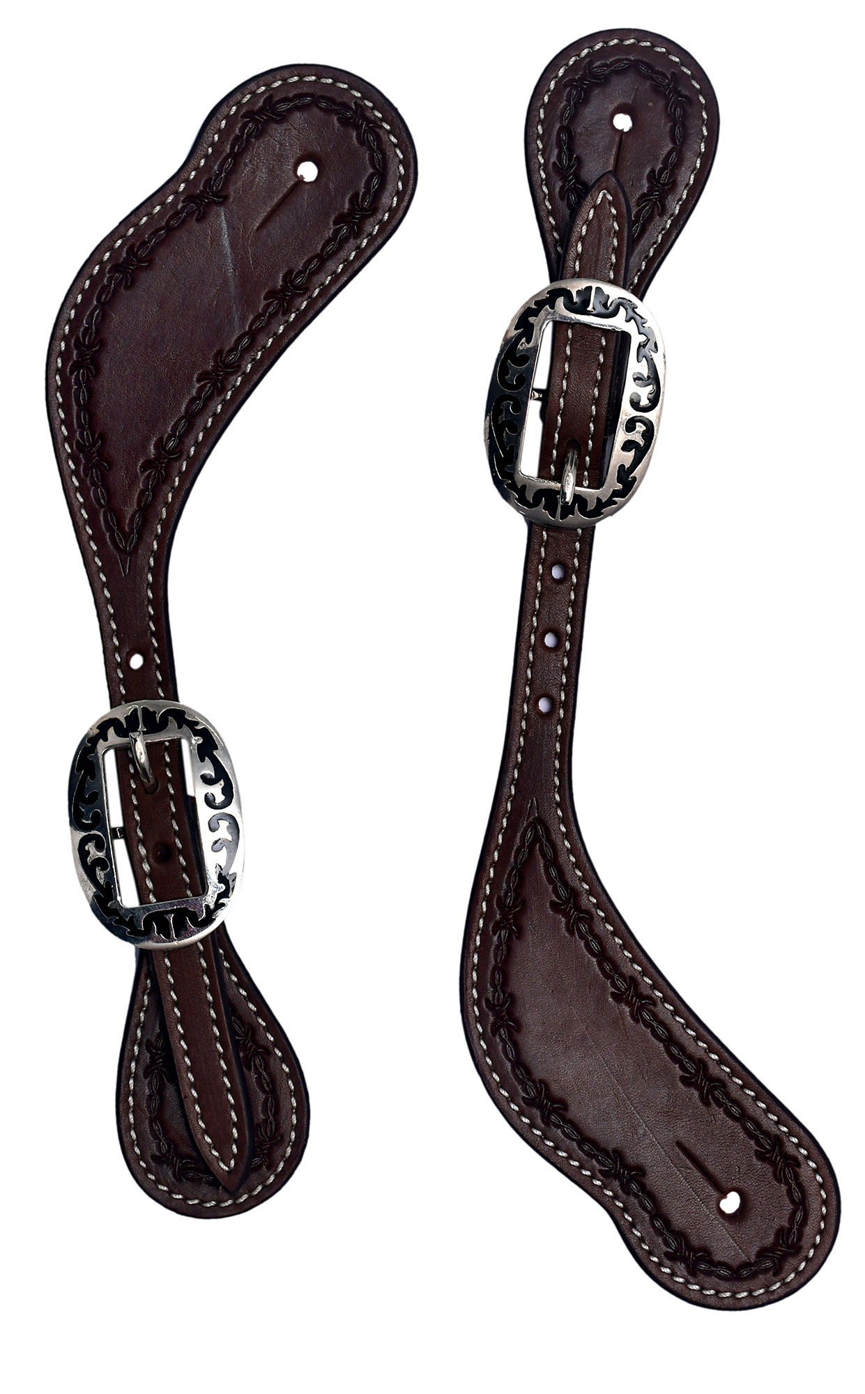 - Barbwire Tooled Spur Strap with 4 holes on belt gives better tighter grip while riding