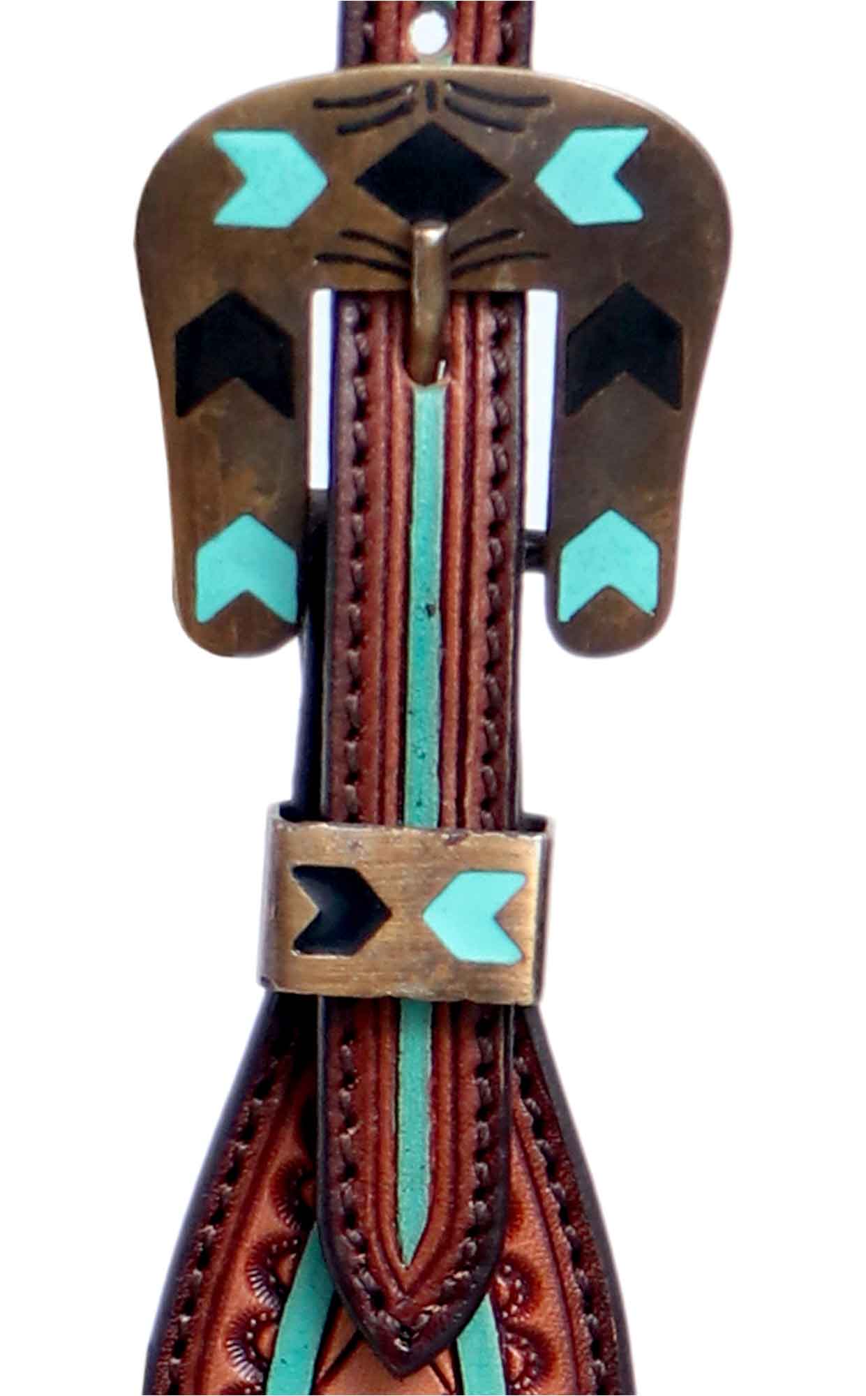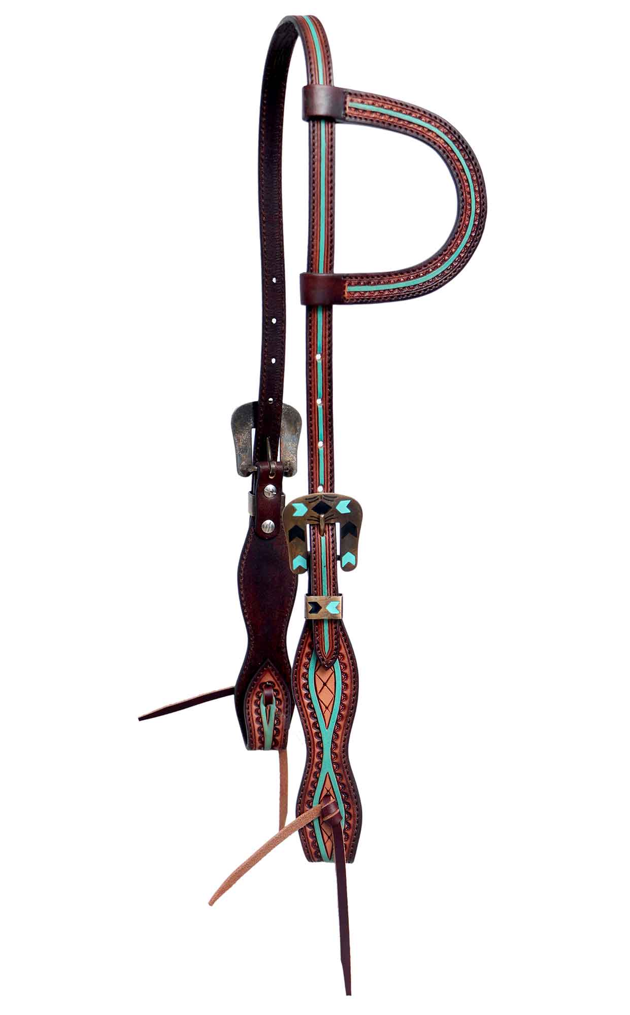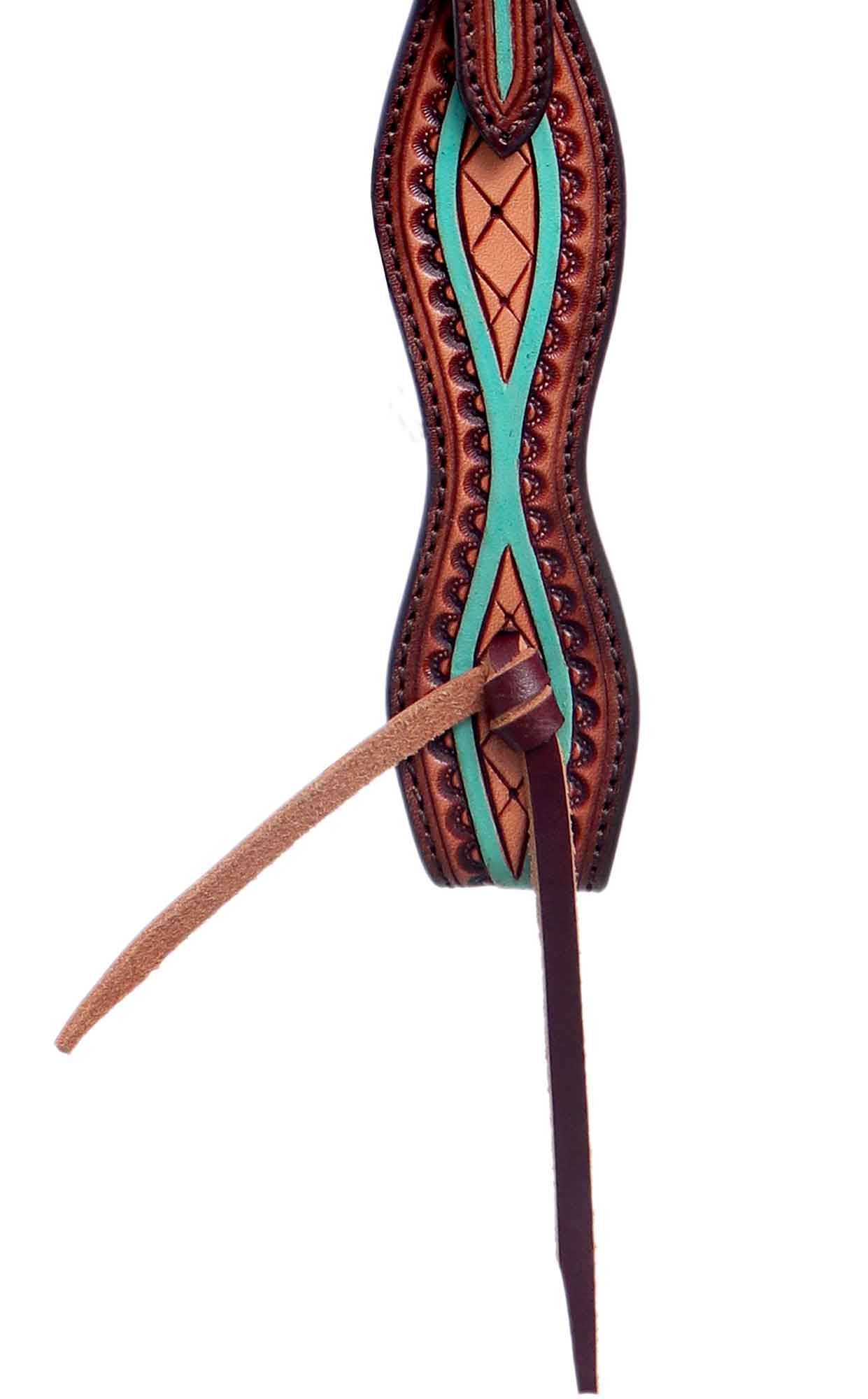 Beautiful Turquoise Tooled Slip Ear made with high quality Skirting leather,hand rubbed edges for a smooth feel and texture, the headstall is then paired with turquoise and black enameled buckle for an unbeatable look. Black Hoof products are designed for rugged use
