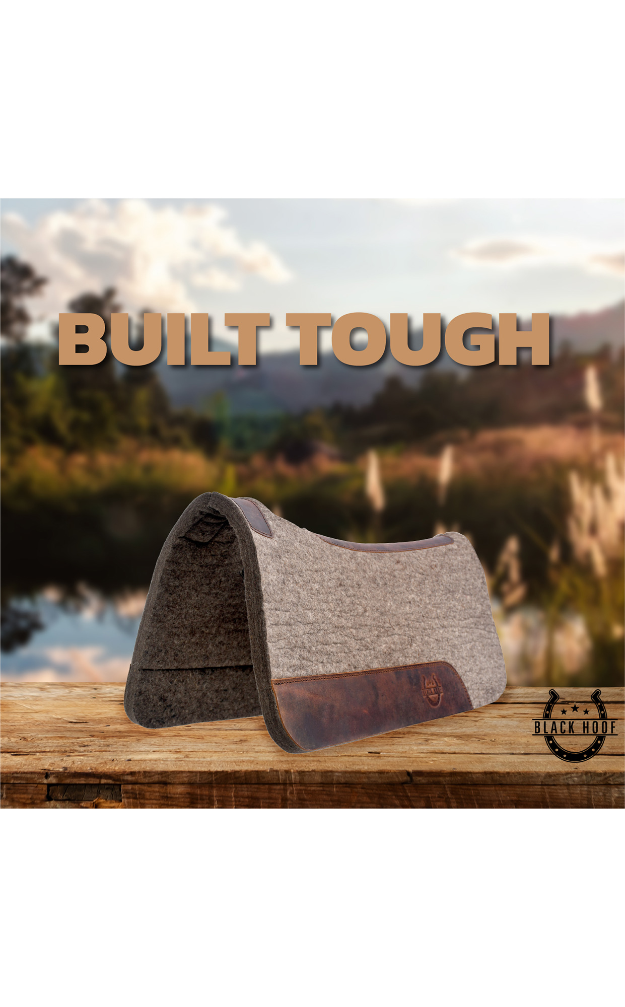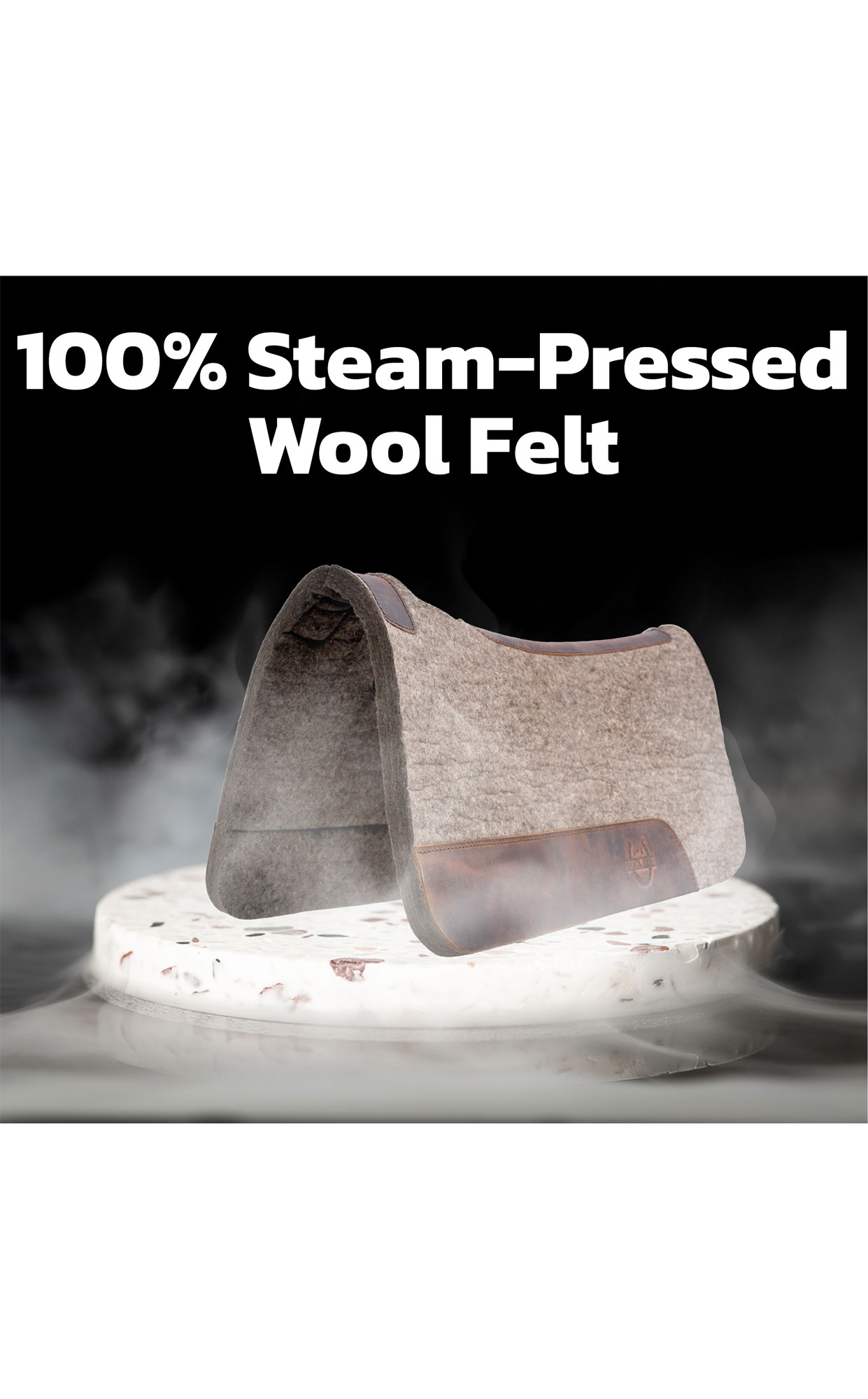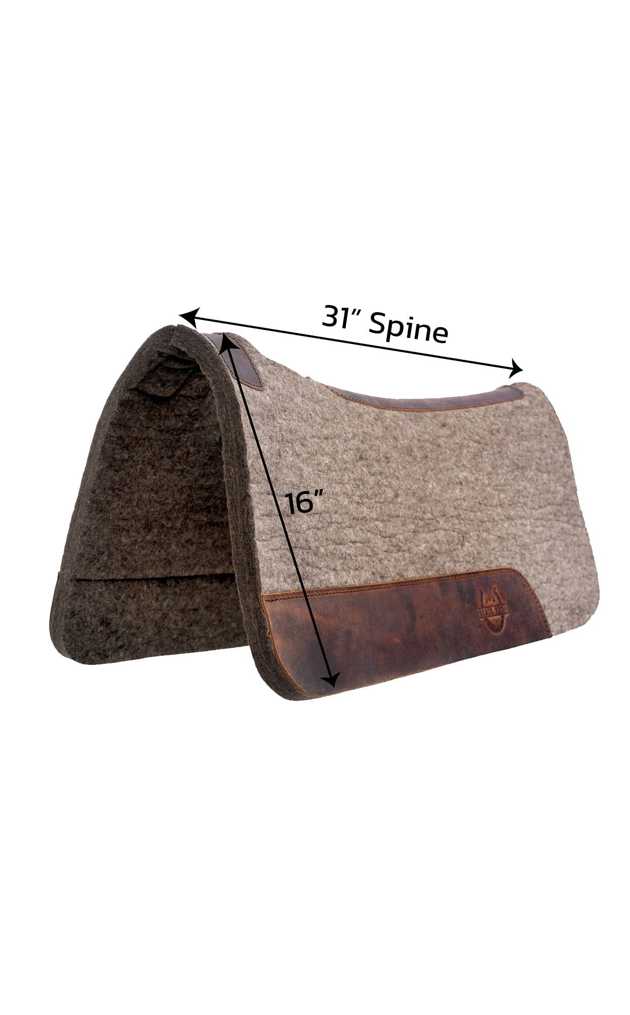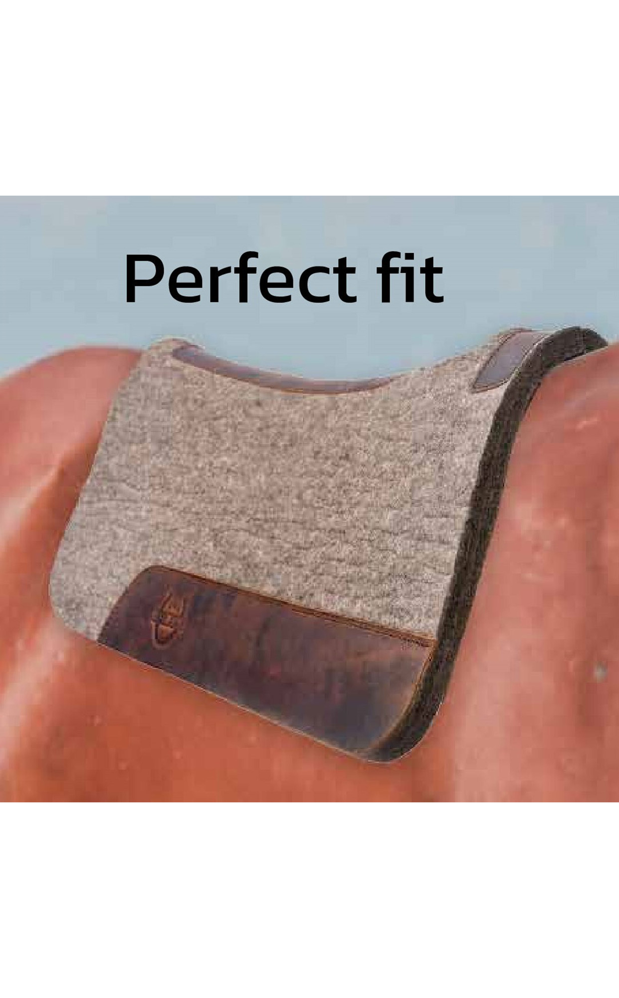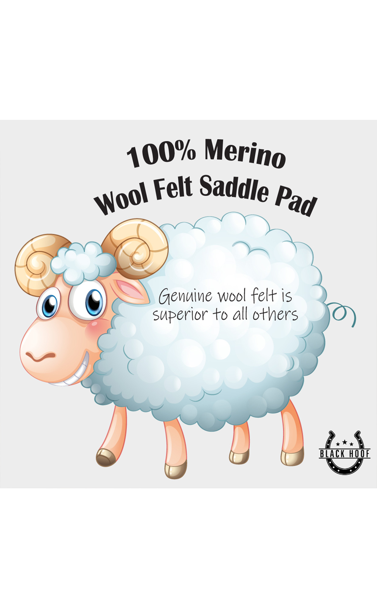 100% Steam pressed Merino wool felt is essential for wicking away sweat. Contoured design helps the pad to sit correctly on horses back and holds the saddle in place, the channel construction allows pressure relif and air flow.