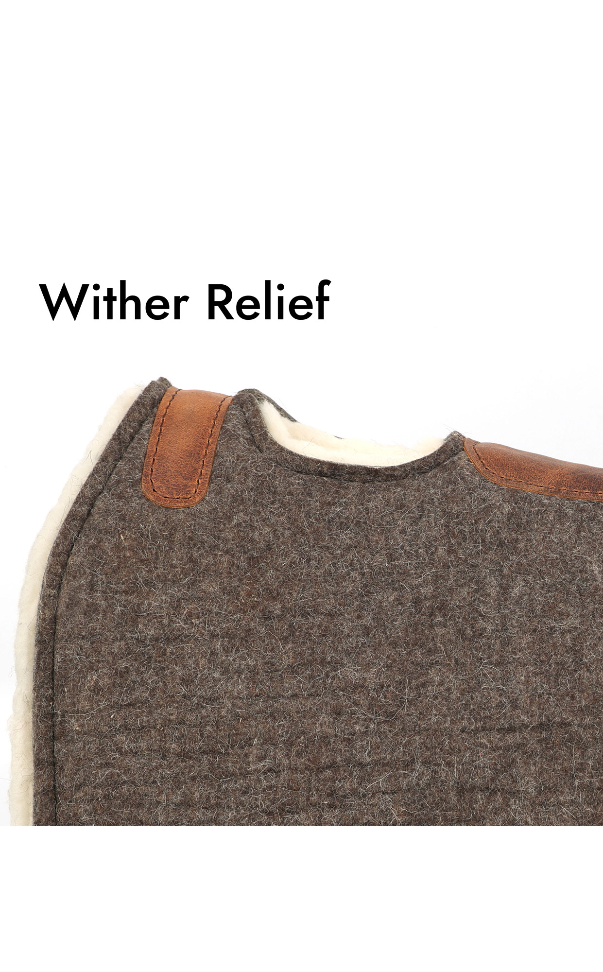 100% wool blend felt is essential for wicking away sweat. Contoured design helps the pad to sit correctly on horses back and holds the saddle in place, the channel construction allows pressure relif and air flow.
